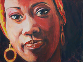 Die Motive reichen von fränkischen Landschaften über lebhafte Unterwassermotive mit schwimmenden Kindern bis zu dem Schwerpunkt der aktuellen Ausstellung: Portraits kubanischer Männer und Frauen. Gemeinsam ist allen Acrylbildern, dass sie dem Wesen der Künstlerin entsprechend dynamisch, leidenschaftlich und kraftvoll gemalt sind. Da ist absolut kein Zögern zu erkennen, jeder Pinselstrich ist zielstrebig auf die Leinwand gebracht, mit schwungvollem Temperament und außerordentlichem Mut zu teils auch ungewöhnlichen Farbkombinationen. Gisa Guddens Wälder schimmern nicht zartrosa im Abendlicht, bei ihr steht der Wald fast in Flammen von der knallroten Sonne. In anderen Landschaftsbildern dominiert blau in allen Abstufungen. Ein Dorf ist komplett in kräftigen rosa-, ocker- und rostfarbigen Tönen gemalt. Ein Vogel singt vor knallrotem Hintergrund.
