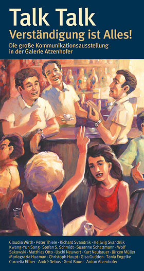 ![]() Talk Talk Die große Kommunikationsausstellung in der Galerie Atzenhofer 6. Sept. bis 4. Okt 2014 „Talk Talk“ ist der Titel eines Romans von T.C. Boyle, darüber hinaus ein Begriff der „American Sign Language“, der für ein lockeres Gespräch unter Gehörlosen mittels Gebärdensprache steht. Thema unserer Ausstellung ist Kommunikation in allen Formen. 20 Künstler haben sich mit modernen, aber auch antiquierten Verständigungsformen, nonverbaler, lautstarker und gestörter Kommunikation beschäftigt. Gestik, Mimik und alle Arten technischer Hilfsmittel, die zum gegenseitigen Austausch zur Verfügung stehen, wurden in Szene gesetzt. Von stiller Übereinkunft über sanfte Interaktion bis zum schrillen Drama ist Alles geboten. Veranstaltungen: 27. September, 18.30 Uhr, Lesung mit Alexander Görsdorf |