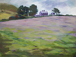 Volker Hahn ist ein eher intuitiver Mensch, der malt, was ihm gerade gefällt oder aus irgendeinem Grund ein inneres Bedürfnis ist. Es ist kein Zufall, dass er gern zu den impulsiver einsetzbaren Aquarellfarben, Pastellkreiden oder Acryl greift und Tuschezeichnungen nur für Buchillustrationen, die nicht Thema dieser Ausstellung sind, einsetzt. Volker Hahn · Cahersiveen - Südirland Die Arbeitsergebnisse sind bei beiden Künstlern eine klare Entsprechung ihrer Persönlichkeit und die charmant hintergründigen Zeichnungen des Kopfmenschen Thiele ergänzen sich perfekt mit den ausdrucksstarken, romantischen Gemälden des befreundeten „Bauch-Künstlers“ Hahn.